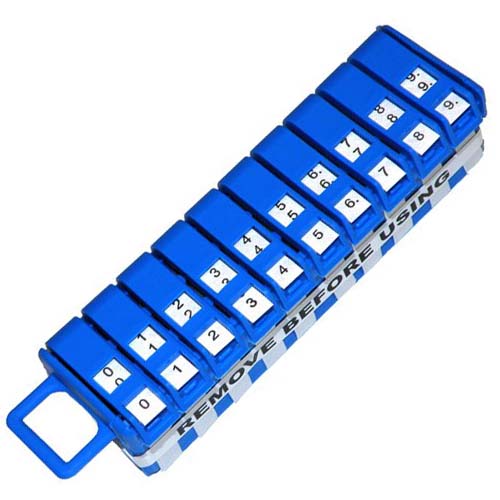 | Устройство для маркировки кабеля, 10 роликов наклеек с цифрами от 0 до 9 в корпусе. |
