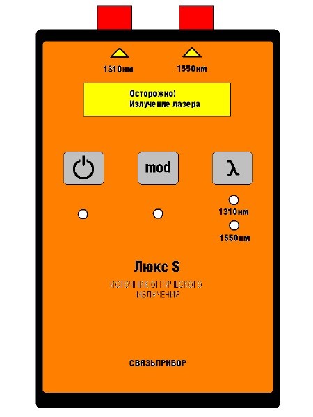 Стабилизированный лазерный источник оптического излучения на две длины волны 1310 и 1550 нм (без VFL и обрыва) Связьприбор Люкс S предназначен для совместного использования с измерителем оптической мощности прибора Люкс SM или OTDR VISA (с опцией встроенного измерителя мощности).