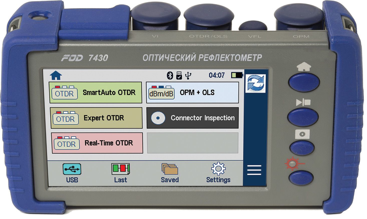 FOD-7430 обладает прекрасными оптическими и широкими функциональными параметрами, такими, как подключение видео щупов для контроля качества полировки разъемов, встроенный лазерный визуализатор повреждений, встроенный источник излучения и измеритель мощности, позволяет сохранять результаты измерений как в SOR формате, так и отчеты в виде редактируемых PDF файлов. сохраняемые файлы могут автоматически грузиться на сервер оператора или сбрасываться на USB Флэш.
