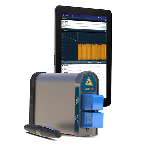 Прибор имеет встроенный источник видимого излучения (VFL) для визуального обнаружения повреждения оптического волокна.