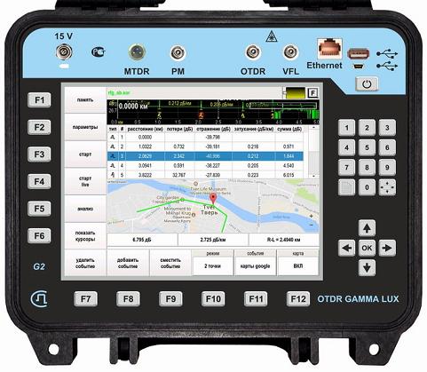 Оптический рефлектометр Связьприбор Гамма Люкс служит для измерения затухания в оптических волокнах и их соединениях, определения длины волокна и расстояния до мест неоднородностей оптического кабеля в волоконно-оптических системах передачи. Гамма Люкс работает с одномодовым волокном на двух длинах волн 1310 и 1550 нм, имеет ударопрочный корпус, сенсорный жидкокристаллический дисплей и возможность связи с компьютером через USB.