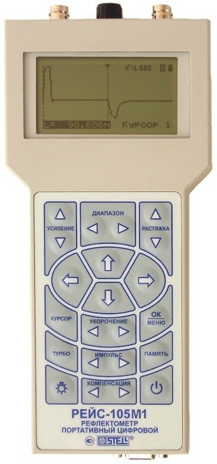 Портативный цифровой рефлектометр СТЭЛЛ РЕЙС-105М1 заменяет прибор РЕЙС-105М, является модернизацией прибора РЕЙС-105Р и относится к новому поколению импульсных рефлектометров, разработанных для широкого применения в практике поиска повреждений и диагностики силовых кабельных линий, линий связи, электропередачи, контроля и управления всех типов. Заменяет многие импульсные рефлектометры, в том числе широко известные измерители неоднородностей линий Р5-10, Р5-13 и Р5-17.