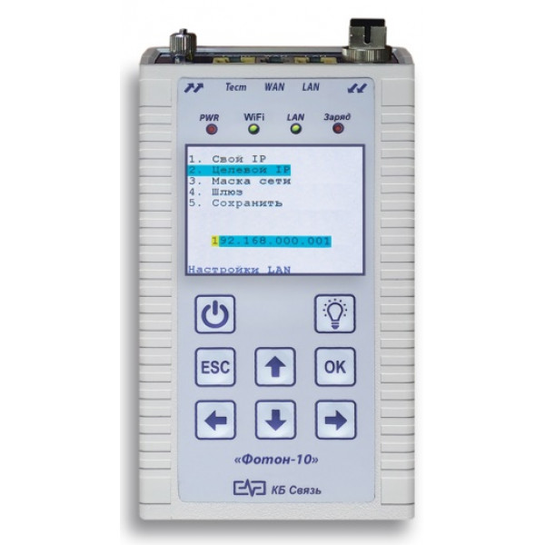 Универсальный тестер КБ Связь Фотон-10 включает в себя измеритель оптической мощности, визуальный дефектоскоп (VFL), Wi-Fi-тестер, измеритель первичных параметров (напряжения (U), сопротивления (R), емкости (C)), LAN-тестер, генератор 1 кГц и светодиодный фонарь.