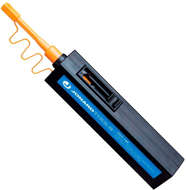 Очиститель оптических коннекторов LC обеспечивает исключительные характеристики, благодаря глубокой очистке разъема не только в критических точках возле волновода, но и поверхности коннектора далеко за ее пределами. Устройство можно использовать для чистки коннекторов LC ("папа") и портов LC ("мама"). Для смены этих режимов, достаточно снять наконечник-адаптер с носика очистителя. Пылезащитная крышка на наконечнике защищает чистящую ткань от загрязнений при хранении. Jonard FCC-125 имеет запатентованный поворотный на 360 градусов наконечник для более широкой очистки. Специальный механизм, позволяет выдвигать носик устройства на дополнительные 38 мм (1.5 дюйма), при этом его общая длина будет 10 см (4 дюйма). Это поможет добраться к порту в трудно доступных местах, например при большом количестве патч-кордов на патч-панеле. Fiber Connector Cleaner использует нетканую микро-волоконную ленту, которая не содержит ворса. Благодаря более широкому чистящему элементу, для хорошей очистки коннектора достаточно одного нажатия. Jonard FCC-125 обеспечивает более 800 чисток.