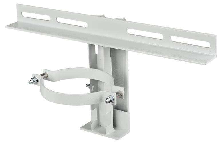 Открытый кронштейн предназначен для подвески универсальных и внутризоновых оптических муфт без защитного кожуха на столбовой опоре. Крепление к опоре осуществляется с помощью хомута крепления или ленты крепления.