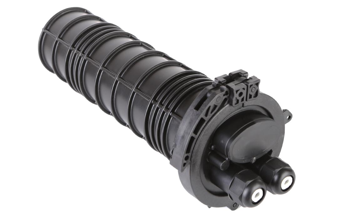 Ввод кабеля, крепление и герметизация осуществляется с помощью резьбовых фитингов, отлитых непосредственно на оголовнике муфты. Муфта имеет два круглых патрубка с фитингами и один овальный, герметизация вводимых в который кабелей осуществляется также механическим способом. Используя специальные комплекты для ввода в овальный патрубок можно ввести как два отдельных кабеля так и транзитный. Заглушка овального ввода выламывается при помощи молотка.