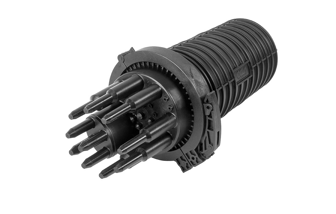 Способ герметизации вводов кабелей, осуществляется с помощью термоусаживаемых трубок ТУТ. Круглые патрубки на оголовнике муфты изначально герметичны и имеют ступенчатую форму с разными диаметрами. Срезая патрубок в определенном месте можно подобрать отверстие максимально близкое к диаметру вводимого кабеля. Таким образом, исключается излишнее натяжение ТУТ после усадки при вводе относительно тонких кабелей. Все патрубки муфты оснащены также индивидуальными узлами крепления ЦСЭ.