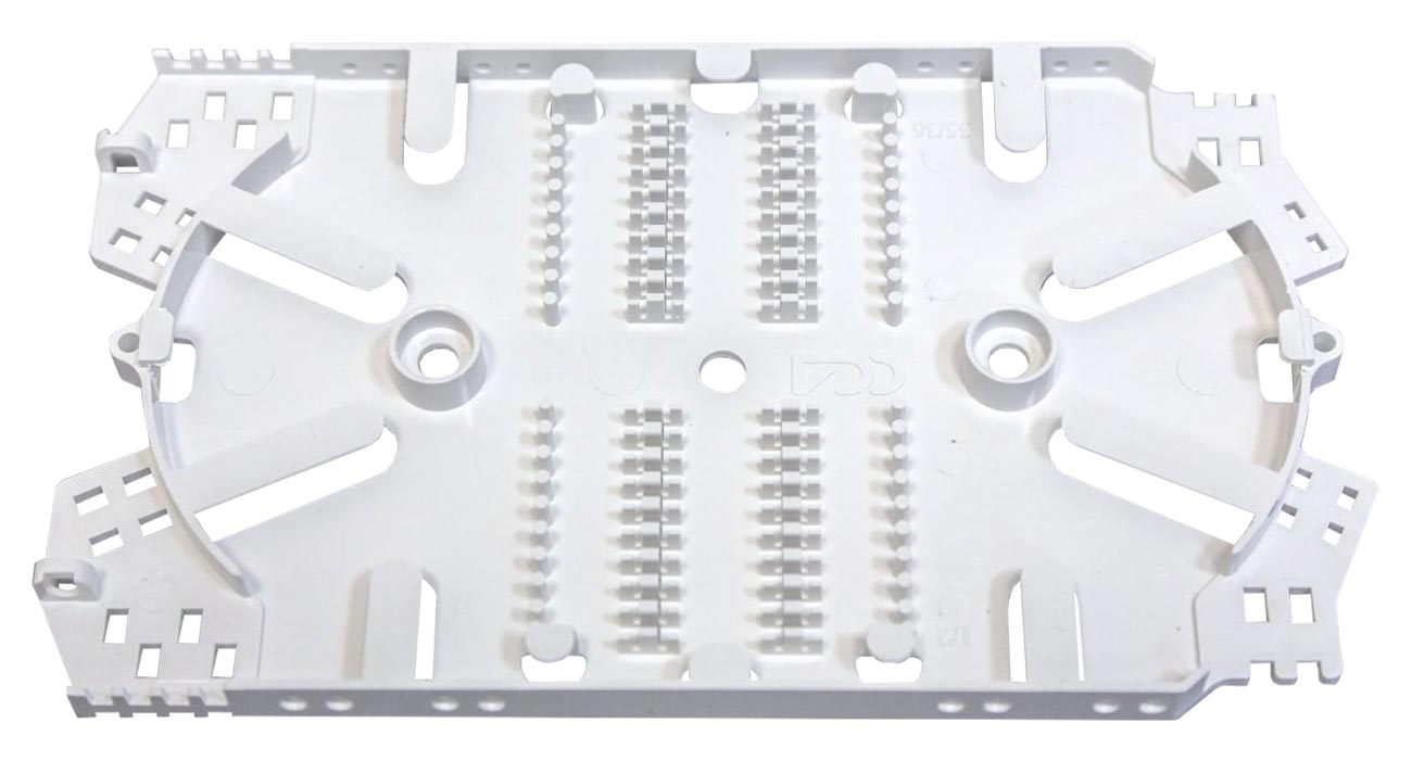 Конструкция кассеты позволяет заводить модули с ОВ с любого из четырёх углов и осуществлять изменение направления укладки запаса волокон. Свободная укладка дает возможность трехкратной переделки сварки волокна без уменьшения числа витков запаса.