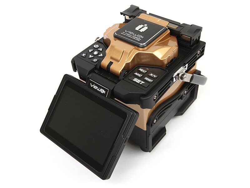 Аппарат сваривает ленты до 12 волокон и позволяет наблюдать их изображение, увеличенное до 250 раз.