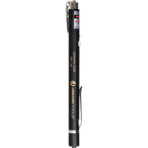 Jonard VFL-25 - визуальный локатор неисправностей оптического волокна с коннекторами FC, SC, ST. Этот VFL в виде ручки, специально разработан для полевого персонала, которому нужен качественный переносной источник видимого сигнала для просвечивания волокна, поиска нужных портов, тестирования непрерывностей, нахождения изгибов и трещин в сплайс кассетах, пигтейлах и патч-кордах. Локатор поможет найти изгиб, или обрыв волокна в мертвой зоне оптического рефлектометра. Работает в режиме непрерывного свечения (CW), либо в импульсном режиме (мигание).