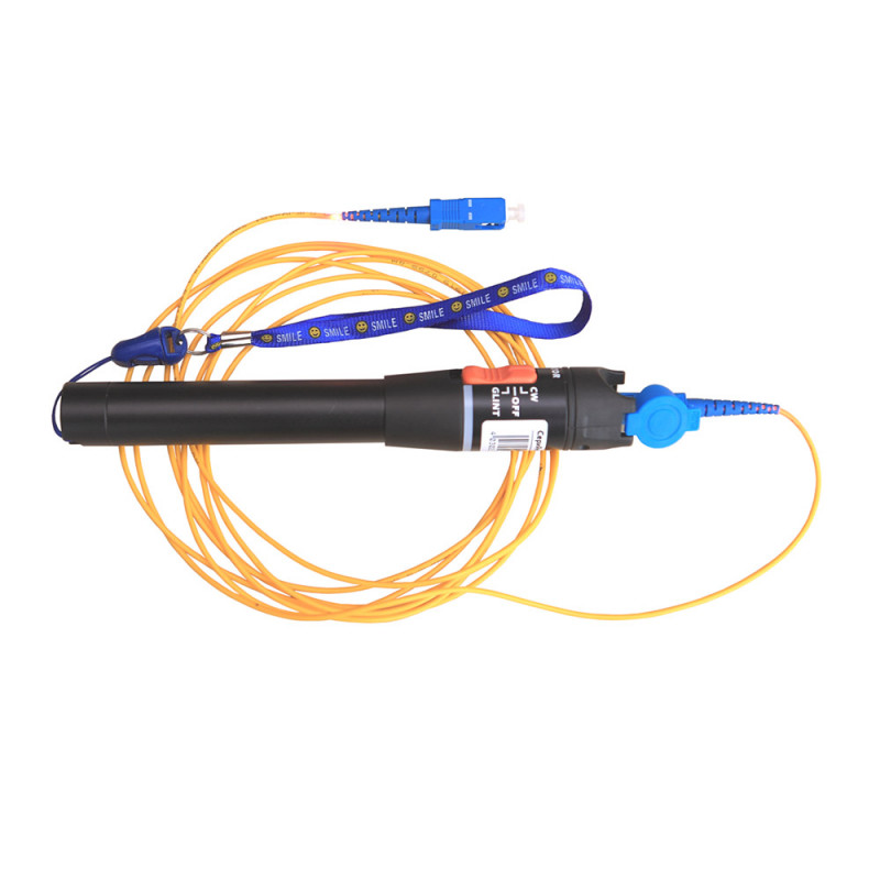В тех местах, где происходят потери сигнала, возникает ярко-красное пульсирующее свечение, хорошо заметное невооруженным глазом сквозь желтую оболочку многомодовых и одномодовых волокон.