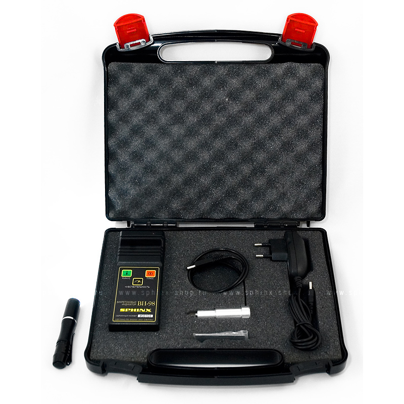 Сфинкс ВИ-98 позволяет с большой степенью вероятности установить технологию воздействия на зону кузовной маркировки. Обнаружение неоднородности, физические свойства которой выше установленного порога, сопровождается световой и звуковой сигнализацией. Прибор имеет возможность изменения порога чувствительности и клавишу автоматической настройки на исследуемую поверхность.