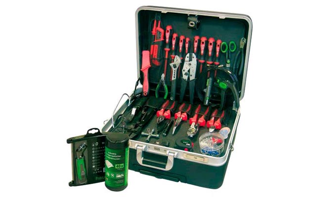 Содержит полный комплект различных универсальных и специальных инструментов и аксессуаров для проведения всех видов электромонтажных работ.