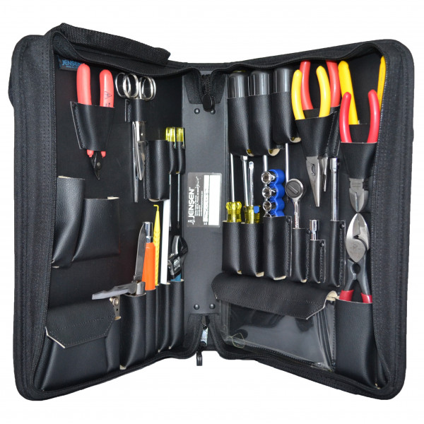 Jensen JTK-45-R (JTK-13487) - набор инструмента монтера связиста для ремонта и обслуживания сетевого оборудования, укладки и монтажа кабеля (производство США). Включает более 40 инструментов. Инструменты размещены в сумке из очень прочного материала Cordura* с застежкой-молнией. Сумка снабжена прозрачным отделением для мелких деталей и карманами для дополнительного инструмента - тестовой трубки, тонального генератора и индуктивного щупа (заказываются отдельно). Габариты внутренней части сумки: 38 x 26.8 x 5 см, размеры карманов: 33 x 26.8 x 3.8 / 12.7 x 5.7 x 30.5 / 12.7 x 5.7 x 25.4 см. Вес набора: 4 кг.