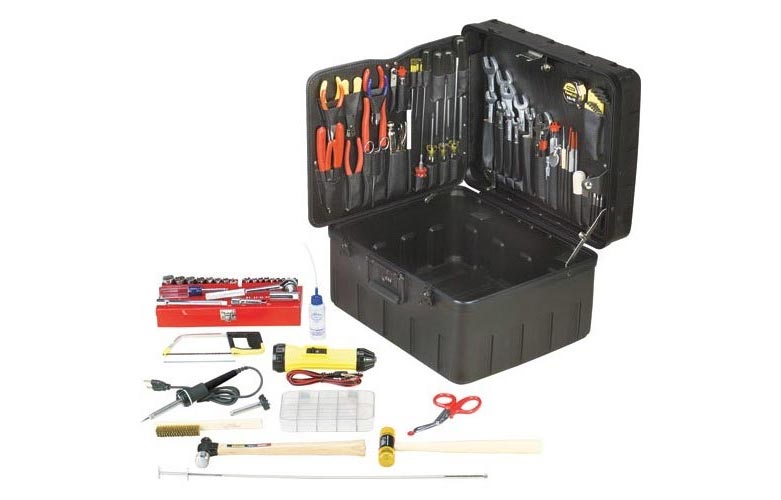 Jensen JTK-91MM-R - универсальный набор-великан производства США. Содержит около ста самых необходимых инструментов для слесарных, электромонтажных и механических работ - от трубного ключа и молотков до масленки и фонаря. Поставляется в удобном чемодане с рукояткой, кодовым замком и пространством для дополнительного инструмента. Габариты 45x37x25 см. Вес набора 15 кг.