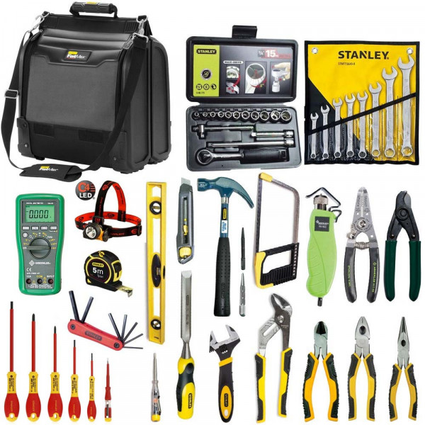 Применяется для обслуживания электрических сетей и линий связи, разделки кабеля, выполнения слесарных и строительных работ, сборки и разборки легких и средних конструкций. Поставляется в сумке-органайзере, сделанной из плотного нейлона с пластмассовыми дном и боковинами. Легко трансформируется в рабочую станцию, множество карманов фиксируют инструменты вертикально, позволяя легко извлекать их во время работы.