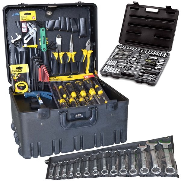 SK-94 - универсальный набор профессиональных инструментов. SK-94 включает более 80 предметов – большой набор рожковых гаечных ключей, накидные головки, несколько воротков, удлинителей, самые необходимые ручные инструменты (отвертки, плоскогубцы и т.д). Набор поставляется в очень прочном и качественном пластиковом кейсе с пространством для дополнительного инструмента и мелких деталей. Внутренние размеры 45 × 36 × 25 см. Вес 24 кг.