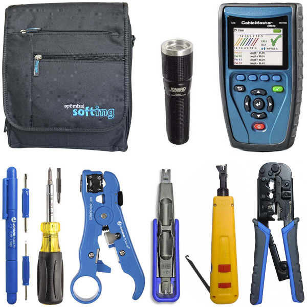 Набор SK-LAN-3-PRO - отличный выбор для монтажа, эксплуатации и быстрой локализации поломок кабельных линий. В его состав входит очень современный и технологичный тестер CableMaster 600, который практически сам сделает всю работу. Подключив его к линии, вы сразу увидите подаётся ли по кабелю Ethernet, какая скорость и тип соединения, присутствует ли питание PoE и достаточна ли его мощность. Если сигнала нет, прибор подскажет воткнут ли шнур в коммутатор, какая общая длина кабеля, нет ли обрывов и коротких замыканий. В случае, когда линия оборвана или закорочена, вы увидите расстояние до повреждения.