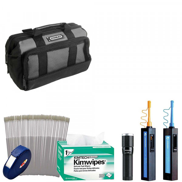Также в комплекте есть устройство для очистки кассетного типа, совместимое с любыми коннекторами. Для удаления грязи с внутренних стенок проходных адаптеров диаметром 2.5 мм, предусмотрен набор палочек со специальными наконечниками. Безворсовые салфетки, в свою очередь, многофункциональны и подойдут для всех деликатных работ. Ними протирают оптоволокно, сварочные аппараты, измерительные приборы, стеклянные поверхности и объективы.