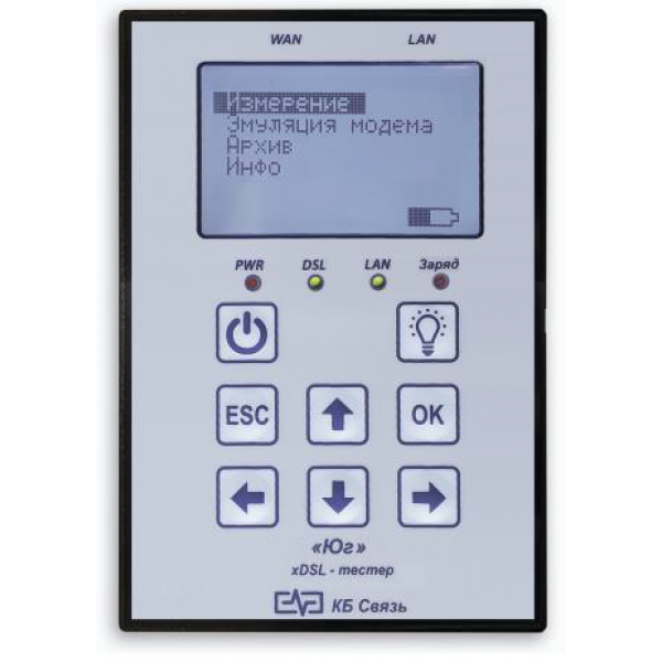 Тестер ADSL-мини КБ Связь ЮГ предназначен для диагностики и быстрой оценки качества подключения канала широкополосного доступа с применением технологии семейства ADSL. Оценка качества работы канала производится за счет функции имитации модема по направлению к DSLAM. Прибор проводит авторизацию по протоколу PPPoE.
