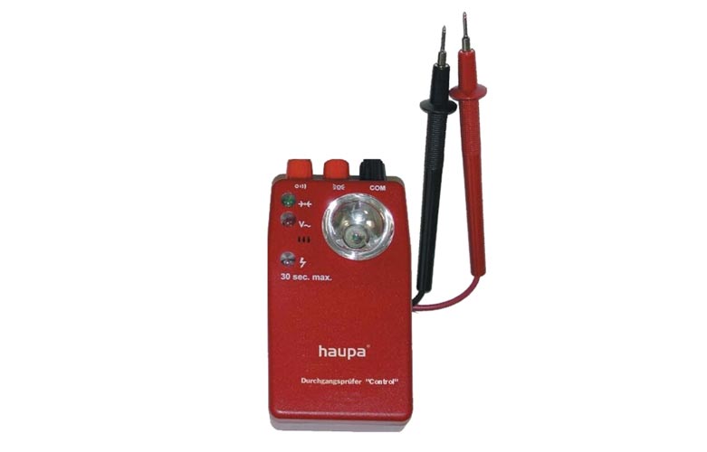 Прибор для проверки протекания Haupa Control со встроенным карманным фонариком. Прибор позволяет выполнять 5 профессиональных функций на электрических кабелях.