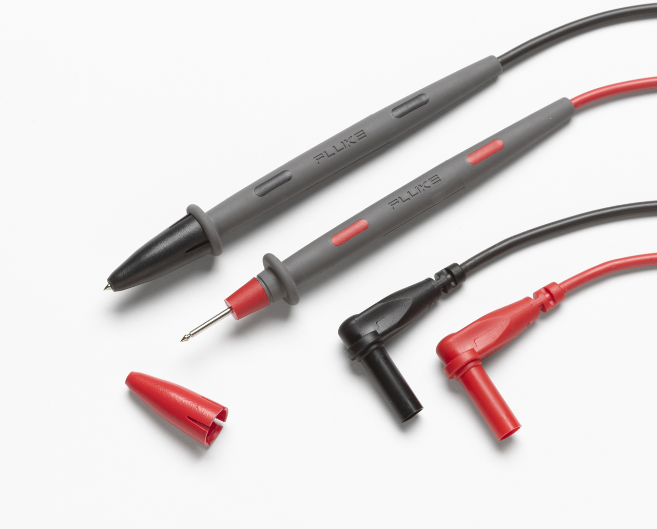 - Одна пара (красный, черный) удобных в захвате пробников с силиконовой изоляцией, с защитным колпачком, измерительные провода, изогнутые под прямым углом