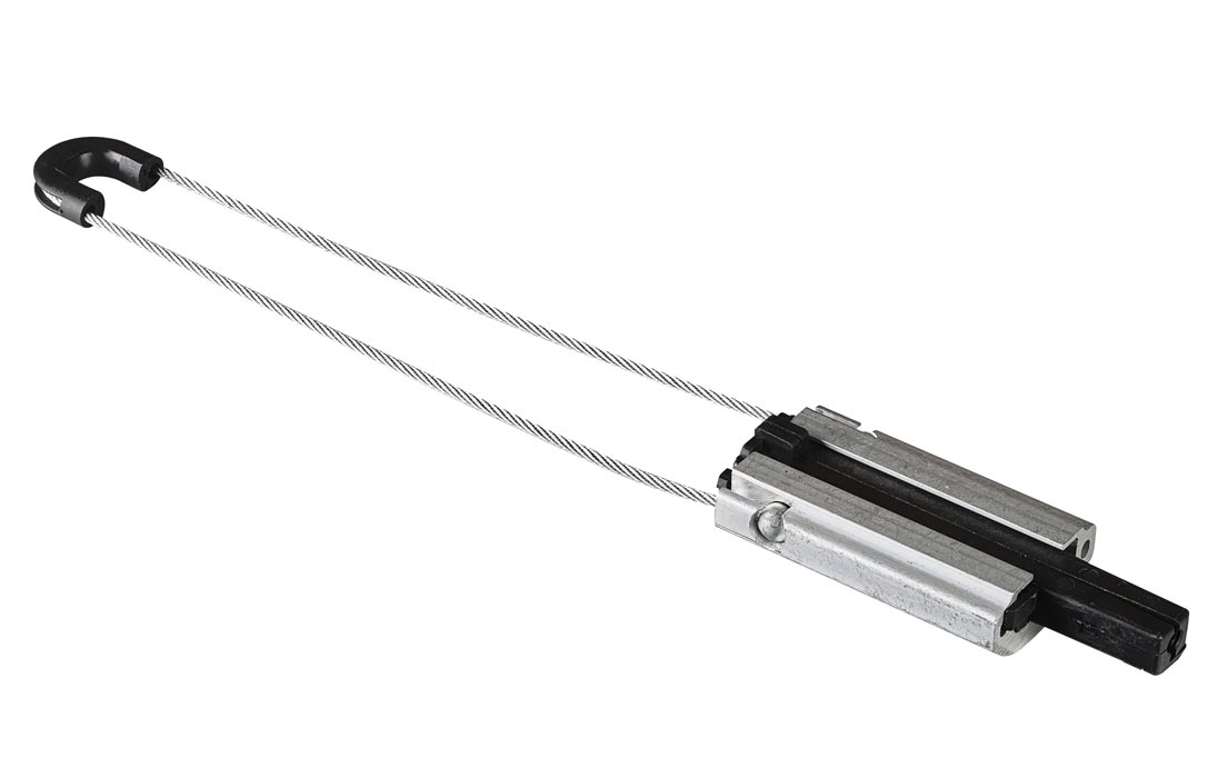 Предназначен для анкерного крепления несущего проводника или самонесущего оптического кабеля диаметром 11-14 мм, монтируемого на опорах воздушной линии электропередачи, связи, городского электрохозяйства (уличного освещения, наземного электротранспорта), элементов зданий и сооружений.