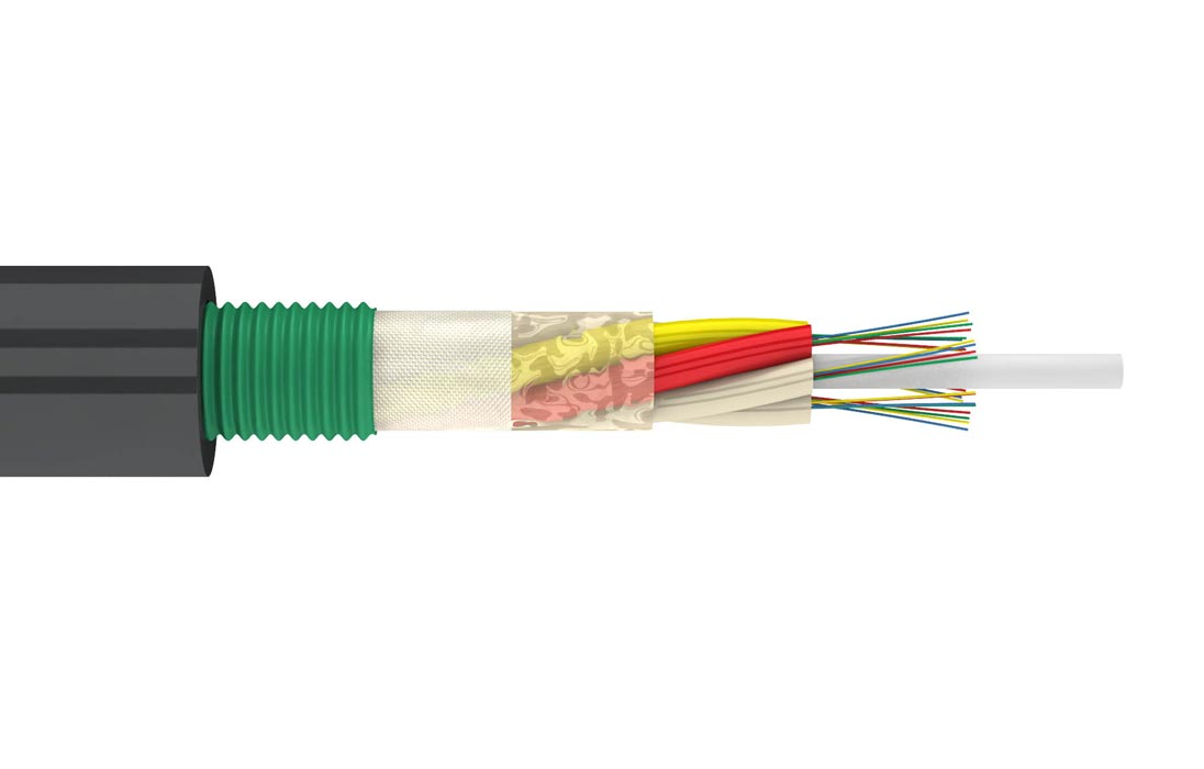 Конструктивно представляет собой повив оптических модулей вокруг стеклопластикового прутка защищенного стальной гофрированной лентой и наружной оболочкой из полиэтилена средней плотности. Свободное пространство в оптических модулях и в сердечнике кабеля заполнено гидрофобным гелем. На сердечник продольно накладывается водоблокирующая лента.