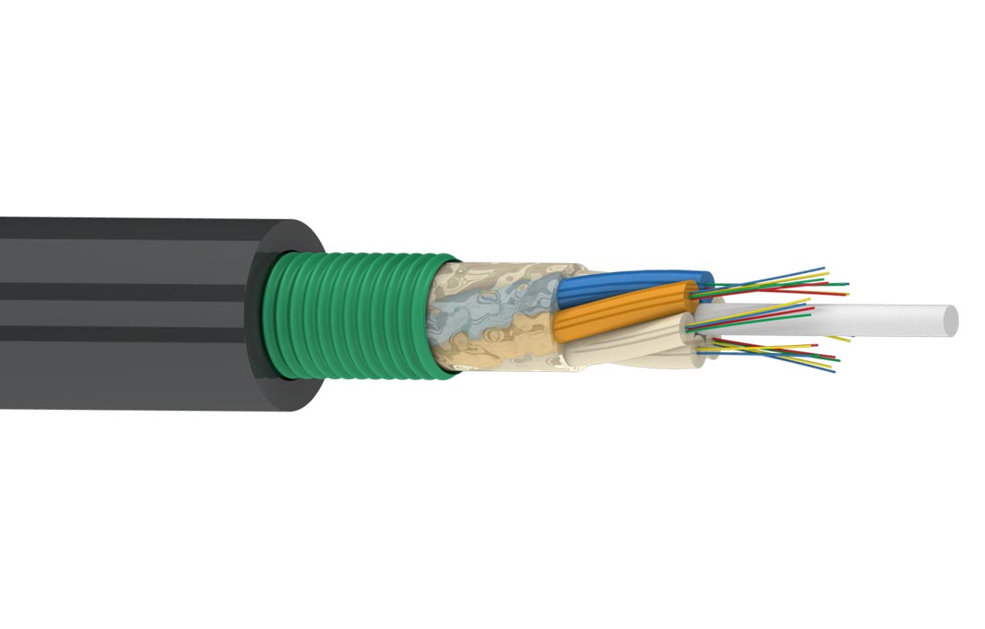Конструктивно представляет собой повив оптических модулей вокруг стеклопластикового прутка покрытый промежуточной полиэтиленовой оболочкой и защищенной стальной гофрированной лентой и наружной оболочкой из полиэтилена средней плотности. Свободное пространство в оптических модулях и в сердечнике кабеля заполнено гидрофобным гелем.