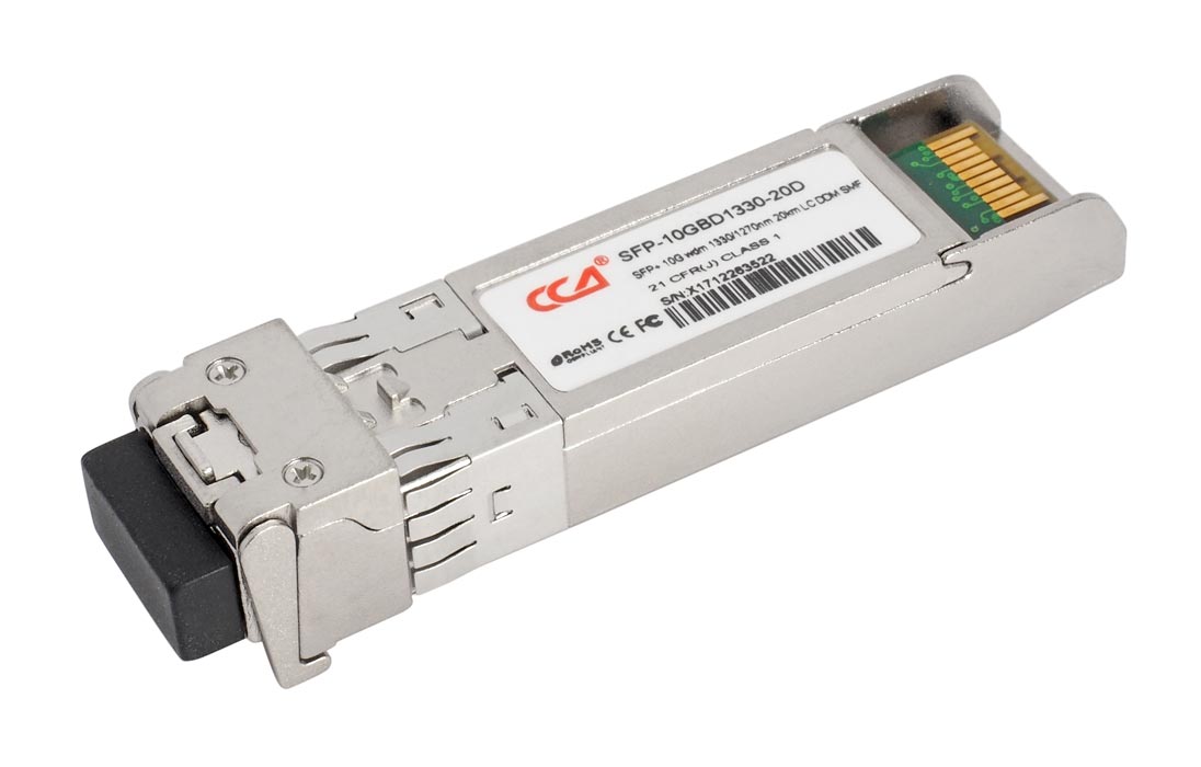 Одноволоконный оптический модуль с форм-фактором SFP+ для 10G Ethernet, соответсвует стандарту 1000Base-BX. Предназначен для работы в одномодовом оптическом волокне (Single-mode fiber, SMF), максимальная дальность 20 км, LC коннектор, рабочая длина волны Tx/Rx: 1330/1270 нм.
