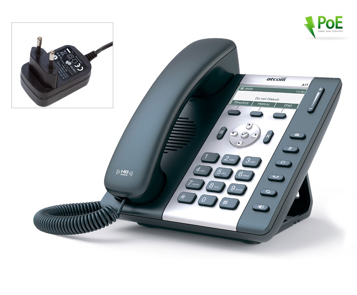 ATCOM A11 – доступный IP-телефон на 3 SIP-аккаунта (с возможностью прописать резервный SIP-сервер на каждый аккаунт с поддержкой POE (48 вольт, 802.3ah).