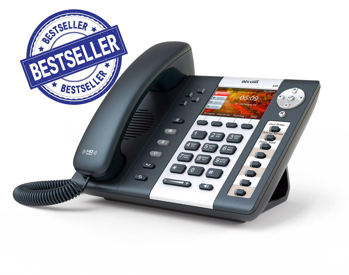 ATCOM A48 - профессиональный IP-телефон на 32 SIP-аккаунта с цветным дисплеем 3,2" (разрешение 462x278).