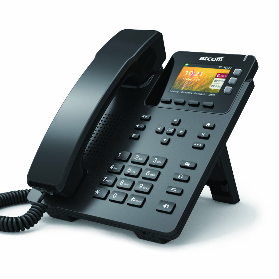 Бюджетный IP-телефон ATCOM D32 с цветным дисплеем и Гигабитными портами идеально подойдёт для домашнего использования, а также использования в предприятиях малого/среднего бизнеса.