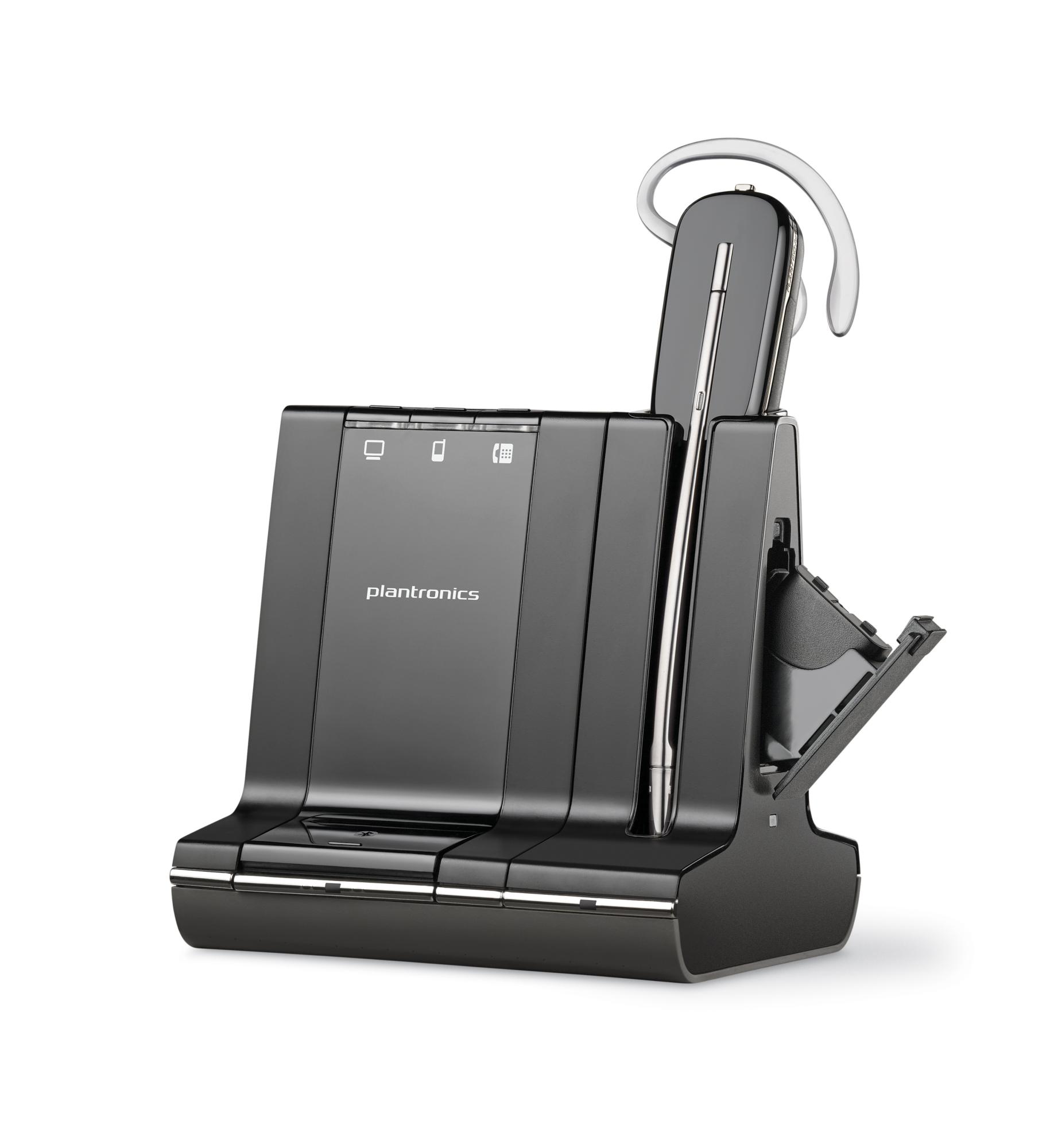 Plantronics W745, Savi (Convertible) – это комплексное решение для безграничного общения! Беспроводная DECT система позволяет управлять вызовами сразу с трех устройств: компьютера, мобильного и настольного телефона, а также организовать конференц-переговоры с любыми двумя из трех подключенных линий.