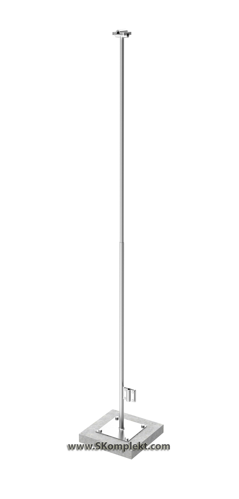 Стойка тросовой молниезащиты высотой 6 метров предназначена для подвеса и фиксации троса над защищаемой кровлей. Стойка выполнена из оцинкованной стали, устанавливается на бетонное основание.